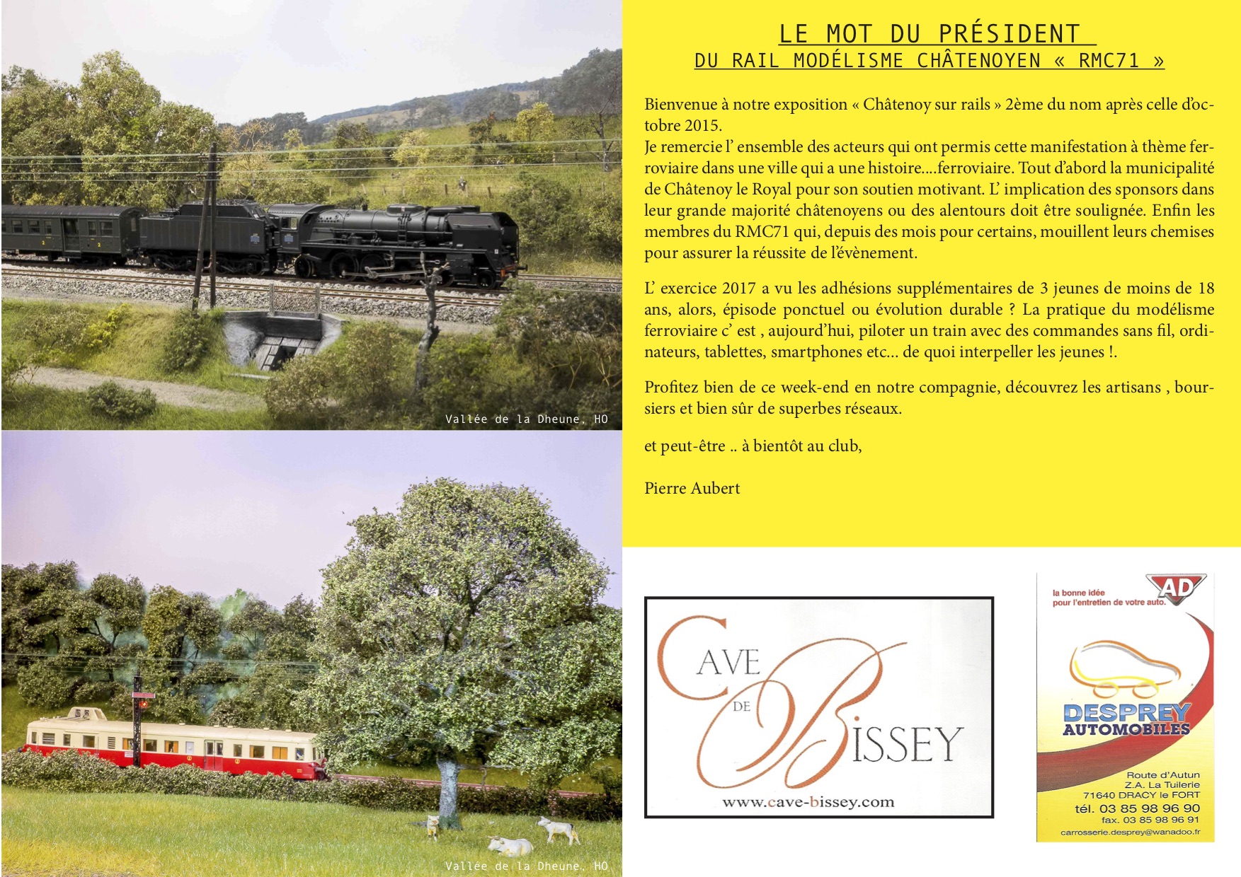 Je remercie l’ ensemble des acteurs qui ont permis cette manifestation à thème ferroviaire dans une ville qui a une histoire….ferroviaire. Tout d’abord la municipalité de Châtenoy le Royal pour son soutien motivant. L’ implication des sponsors dans leur grande majorité châtenoyens ou des alentours doit être soulignée. Enfin les membres du RMC71 qui, depuis des mois pour certains, mouillent leurs chemises pour assurer la réussite de l’évènement.